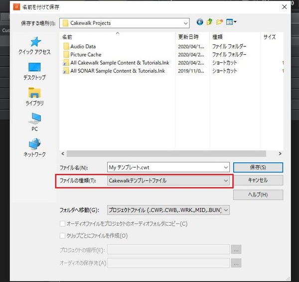 4シ弱ヵ繧。繧、繝ォ縺ョ遞ョ鬘槭b[Cakewalk繝励Ο繧ク繧ァ繧ッ繝医ヵ繧。繧、繝ォ]縺ォ縺ェ縺」縺ヲ縺繧九%縺ィ繧堤「コ隱阪@縲ー菫晏ュ肋繧偵け繝ェ繝繧ッ縺励∪縺吶