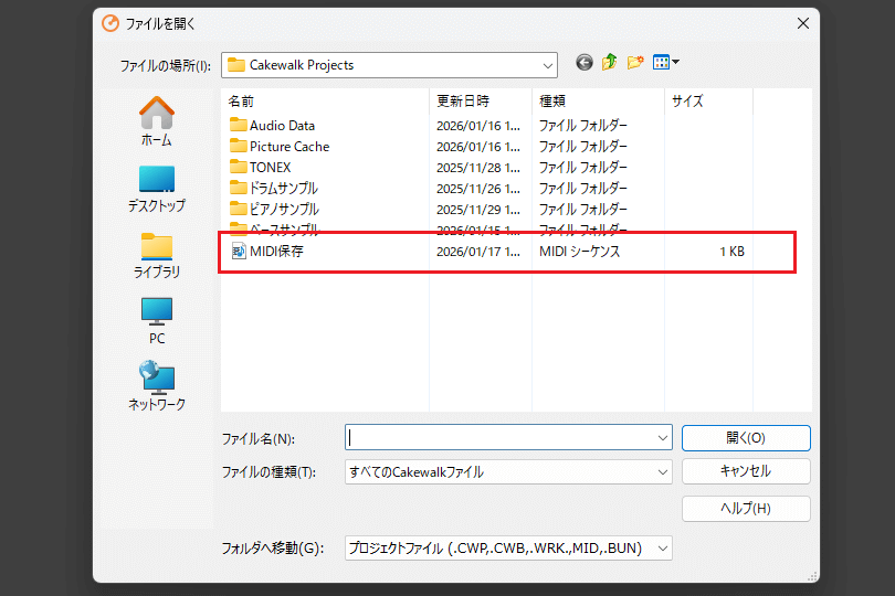 5シ手。ィ遉コ縺輔l縺滉ク隕ァ縺九i縲∬ェュ縺ソ霎シ縺ソ縺溘>MIDI繝輔ぃ繧、繝ォ繧帝∈謚槭@縺ヲ髢九″縺セ縺吶