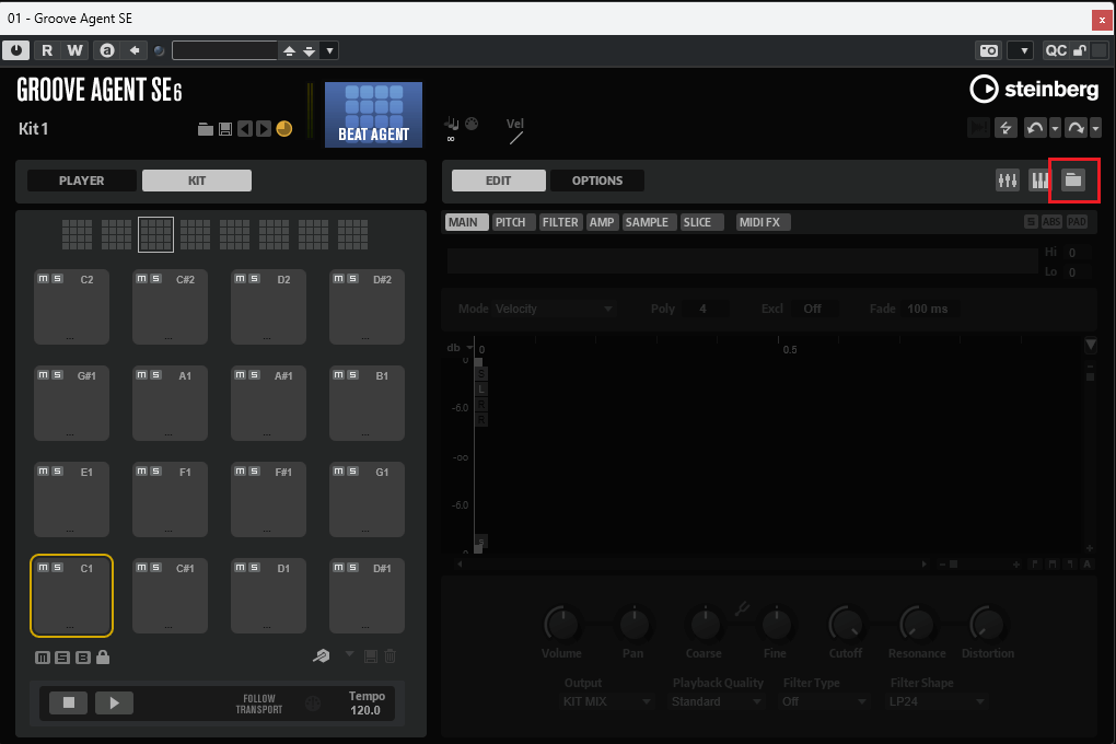 3ïŒãã©ã 鳿ºãGroove Agent SEãã衚瀺ãããããç»é¢å³åŽã«ãããã©ã«ããŒã¢ã€ã³ã³ãã¯ãªãã¯ããŸãããã