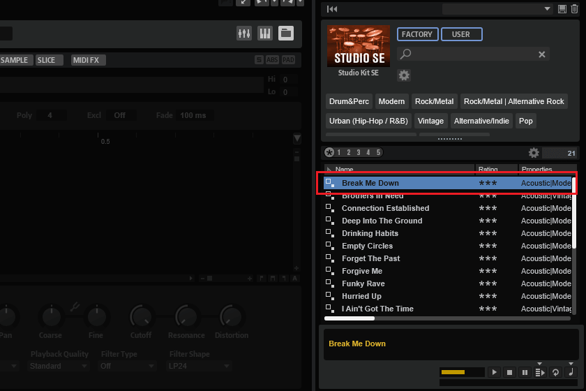 5ïŒãStudio Kit SEãã®ããªã»ããäžèЧã衚瀺ããããããBreak Me Downããéžã³ãŸãããã