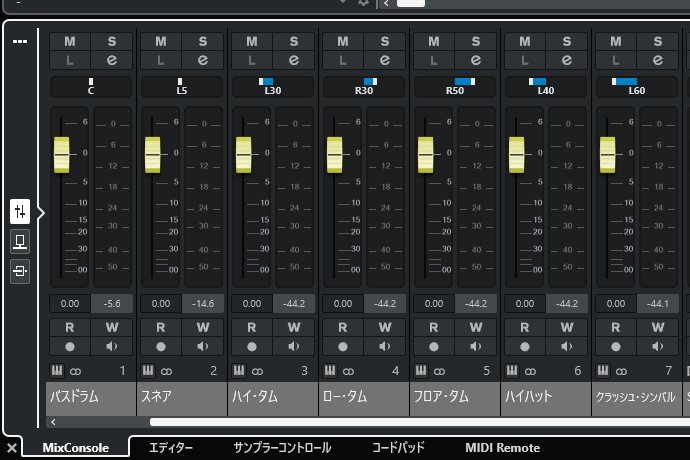 MixConsoleãèŠåœãããªãå Žåã¯ãç»é¢å³äžã®ãäžãŸãŒã³ã衚瀺/é ãããã¿ã³ãæŒããŠè¡šç€ºãããŠãã ããã