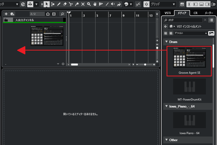 2ïŒé³æºäžèЧãããGroove Agent SEããéžæããäžå€®ã«ãããããžã§ã¯ããŸãŒã³ãžãã©ãã°ïŒããããããŸãã