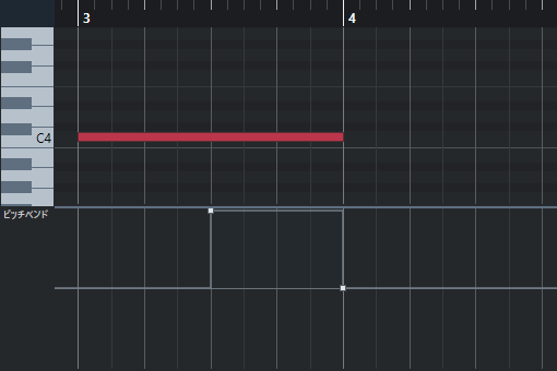 今回は1音チョヌキングを再珟するため、ピッチベンドは以䞋のように描き蟌んでいたす。