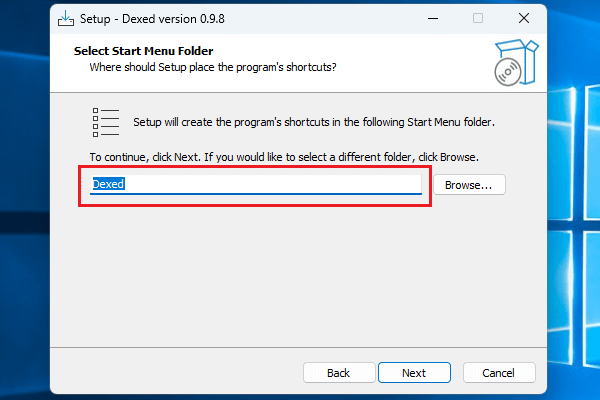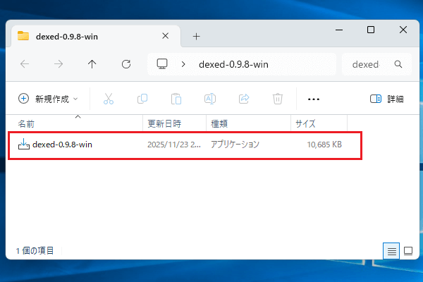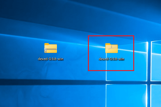 5.圧縮ファイルを解å‡ã—ã€ã€Œdexed-0.9.8-winã€ãƒ•ォルダーを生æˆã—ã¾ã™ã€‚