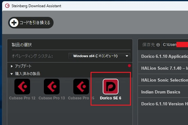 6.一覧ã®ä¸ã‹ã‚‰ã€ŒDorico SE 6ã€ã‚’クリックã—ã¦é¸æŠžã—ã¾ã™ã€‚