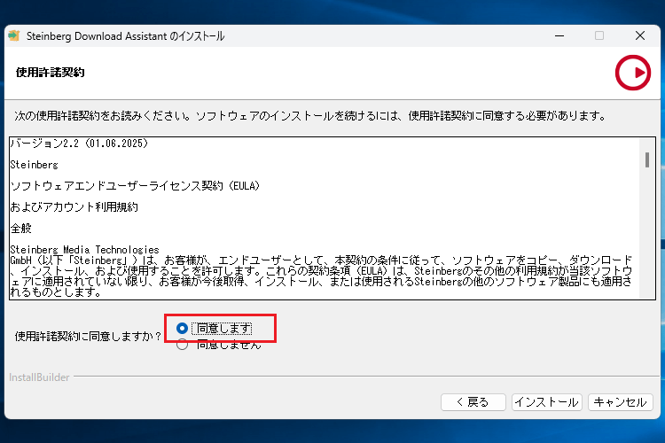 6.Steinberg Download Assistantã®ãƒ€ã‚¦ãƒ³ãƒãƒ¼ãƒ‰ãŒå®Œäº†ã—ãŸã‚‰ã€ã‚¤ãƒ³ã‚¹ãƒˆãƒ¼ãƒ©ãƒ¼ã‚’クリックã—ã¦å®Ÿè¡Œã—ã¾ã™ã€‚