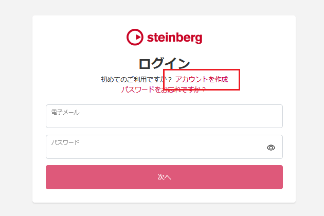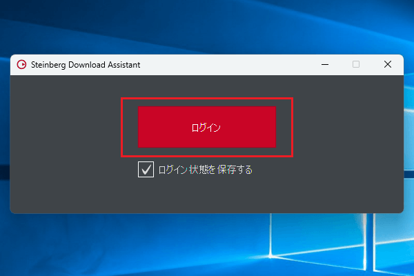 2.Steinberg Download AssistantãŒèµ·å‹•ã—ãŸã‚‰ã€ã€Œãƒã‚°ã‚¤ãƒ³ã€ãƒœã‚¿ãƒ³ã‚’クリックã—ã¾ã—ょã†ã€‚