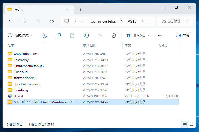 7シ桟ST3繝輔か繝ォ繝繝シシC:\Program Files\Common Files\VST3シ峨↓縲勲TPDK-2.1.3-VST3-64bit-Windows-FULL縲阪ヵ繧ゥ繝ォ繝繝シ繧堤ァサ蜍輔@縺セ縺吶