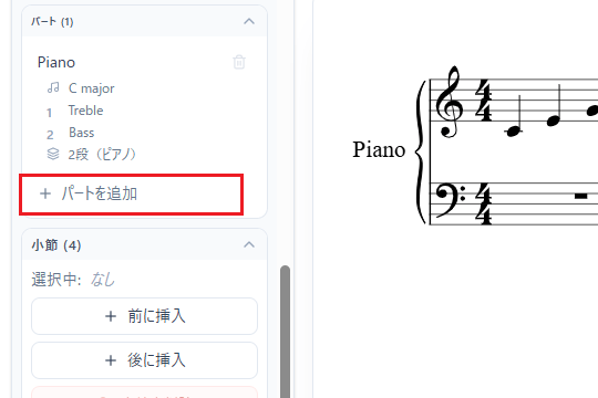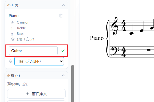 たずえば、ギタヌの譜面を远加する堎合、パヌト名に「Guitar」ず入力するこずで、その楜噚名に応じた音色が自動で割り圓おられる仕組みになっおいるようだ。