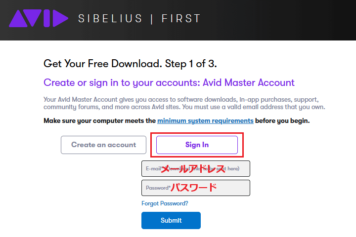 3ïŒAVIDã¢ã«ãŠã³ãããæã¡ã®å Žåã¯ãSign Inããã¯ãªãã¯ããã¡ãŒã«ã¢ãã¬ã¹ãšãã¹ã¯ãŒããå