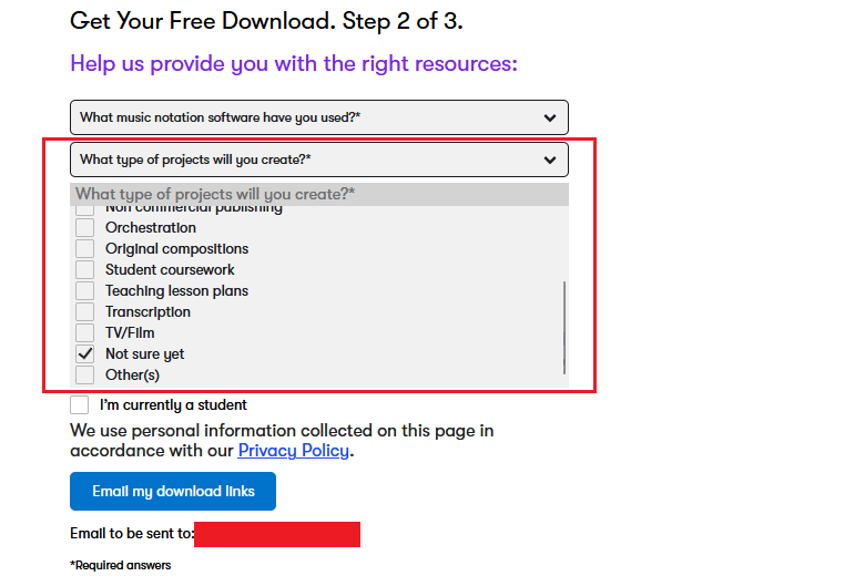 6ïŒSibeliusãã©ã®ãããªç®çã§äœ¿çšãããéžæããŸããç®çããŸã 決ãŸã£ãŠããªãå Žåã¯ãNot sure yetãã«ãã§ãã¯ãå