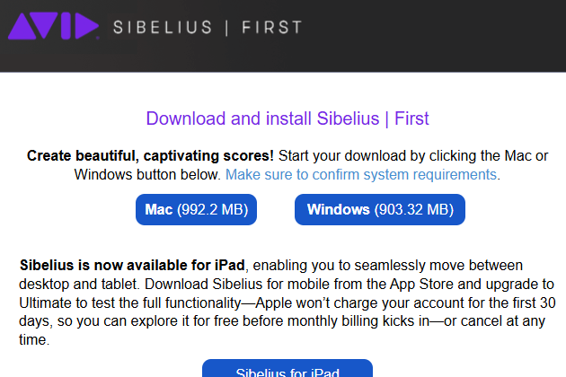 2ïŒããŒãžãäžãžã¹ã¯ããŒã«ããSibelius Firstã®ãGet it nowããã¯ãªãã¯ããŸãã