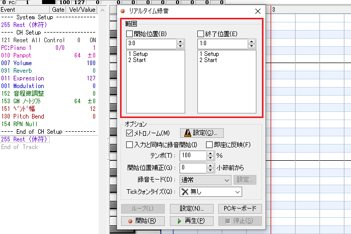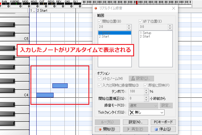ããã§ã¯ããªã¢ã«ã¿ã€ã é²é³ã§MIDIããŒããæã¡èŸŒãã§ã¿ãŸããããä»åã¯ä»¥äžã®é³ç¬Šãå