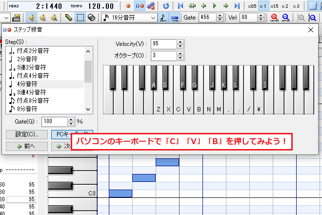 äŸãã°ãStepã§4åé³ç¬Šãéžãã§ããããæéµãããšã4åé³ç¬Šã§MIDIããŒããæã¡èŸŒãŸããŸãã