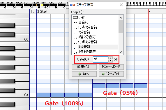 ãGateãã¯MIDIããŒãã®çºé³æéãæå®ãããã©ã¡ãŒã¿ãŒã§ãããã®å€ãå°ãããããšãããŒãã®çºé³æéãçããªããåŸæ¹ã«äœçœãçãŸããŸãã