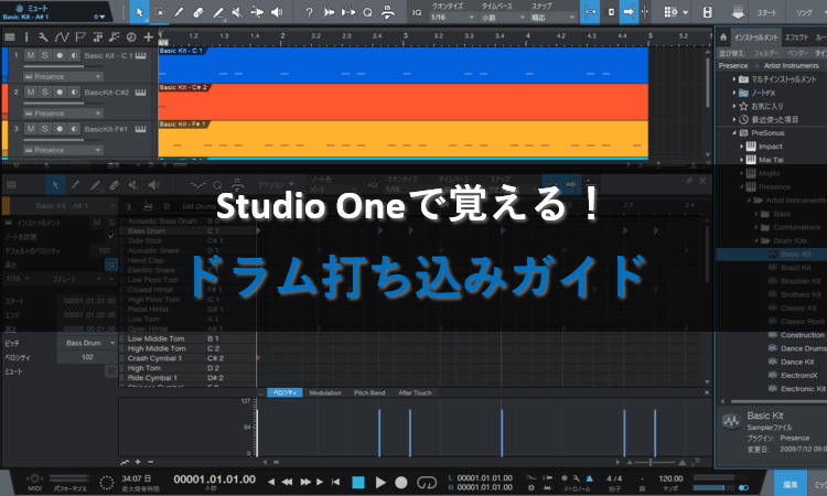 ããã§ãã®èšäºã§ã¯ãStudio Oneä»å±ã®ãã«ã鳿ºãPresenceãã䜿çšããŠããã©ã æã¡èŸŒã¿ã®åºæ¬ãã³ããåããããã解説ããŸãã
