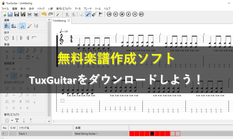 当サイトã§ã¯ã€TuxGuitarã®ä½¿ã„方講座も公開ã—ã¦ã„ã¾ã™ã€‚興味ãŒã‚ã‚‹æ–¹ã¯ã€ã“ã¡ã‚‰ã®è¨˜äº‹ã‚‚ã‚ã‚ã›ã¦ã”覧ãã ã•ã„。