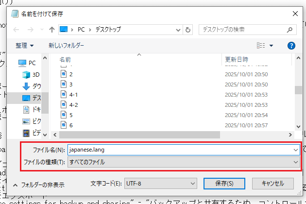 12シ弱ヵ繧。繧、繝ォ蜷阪r縲桂apanese.lang縲阪√ヵ繧。繧、繝ォ縺ョ遞ョ鬘槭r縲後☆縺ケ縺ヲ縺ョ繝輔ぃ繧、繝ォ縲阪↓險ュ螳壹@縺ヲ菫晏ュ倥@縺セ縺励g縺縲