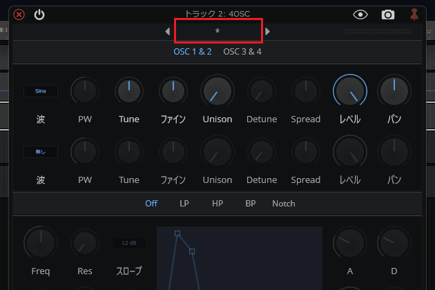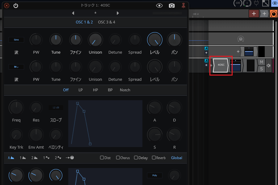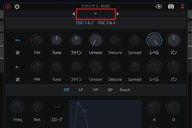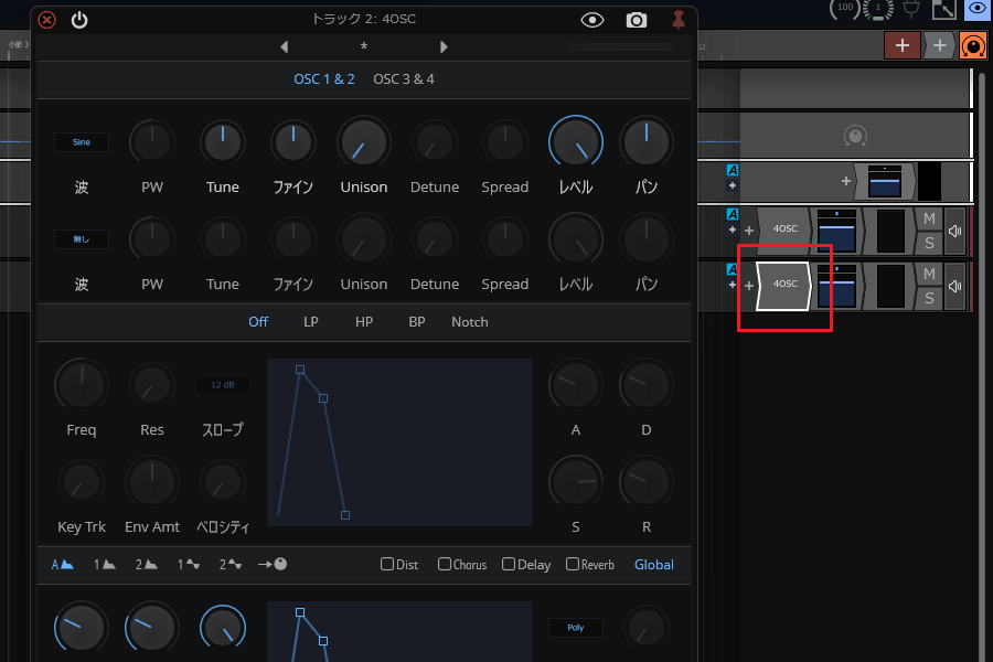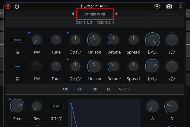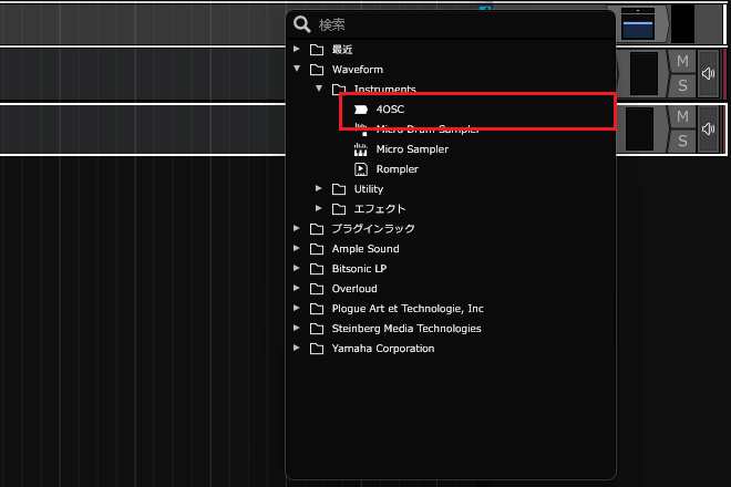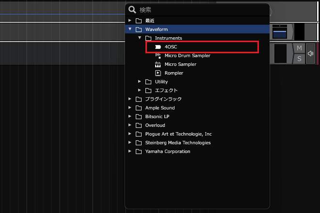 6ïŒè¡šç€ºãããã¡ãã¥ãŒã§ãWaveformãâãInstrumentsããšé²ã¿ãã·ã³ã»é³æºã4OSCããã¯ãªãã¯ããŸãã