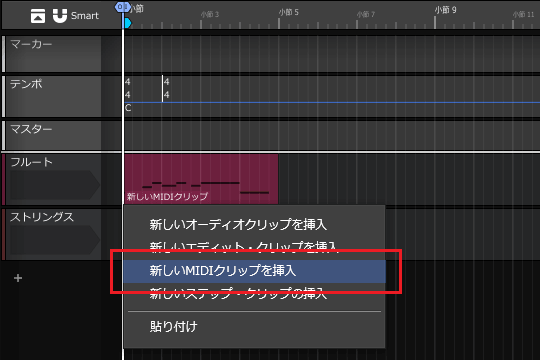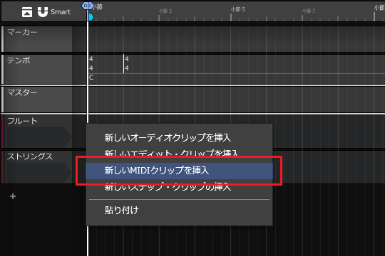 1ïŒãã«ãŒãã®1å°ç¯ç®ãå³ã¯ãªãã¯ããã¡ãã¥ãŒãããæ°ããMIDIã¯ãªãããæ¿å