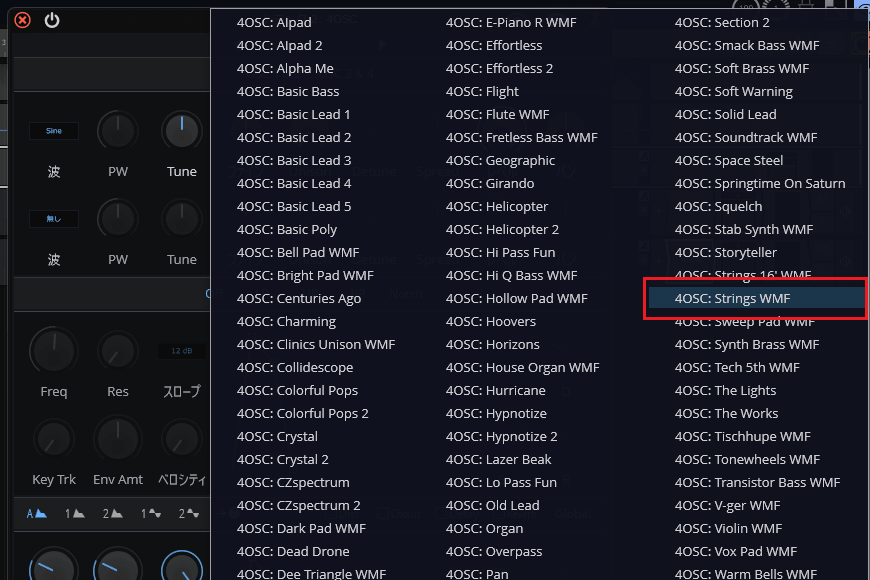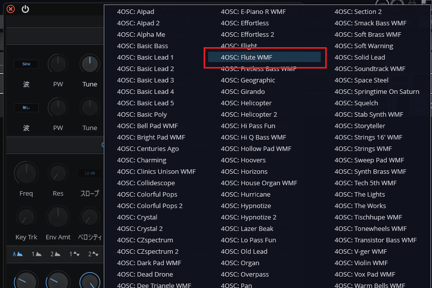9ïŒè¡šç€ºããããªã¹ãã®äžããã4OSC: Flute WMFããæ¢ããŠã¯ãªãã¯ããŸãã