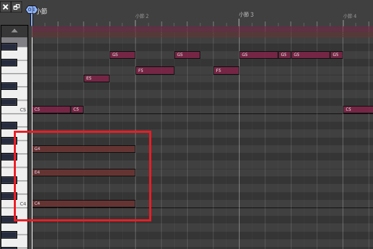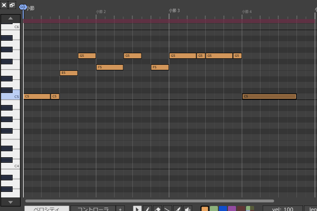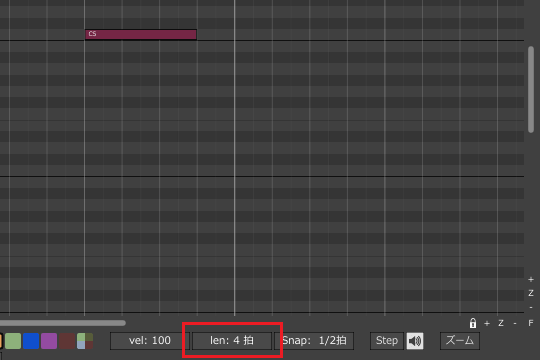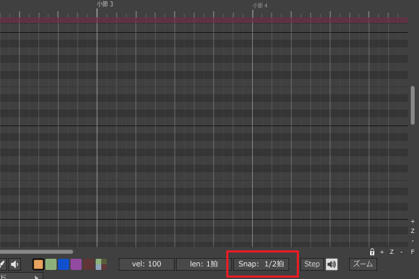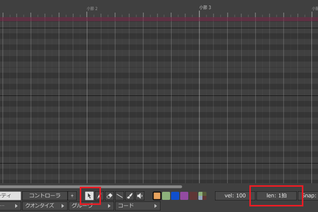 9ïŒããã«ã¯ãªãã¯ããå Žæã«ã4åé³ç¬Šã®é·ãã§MIDIããŒããå