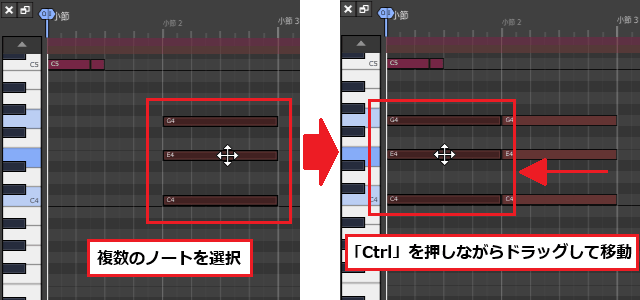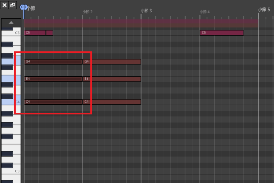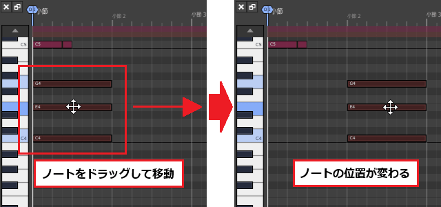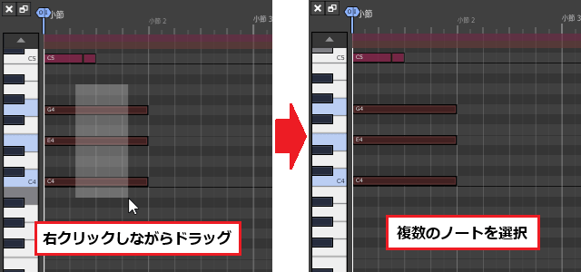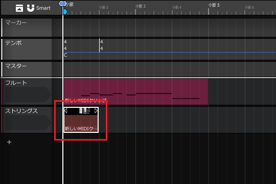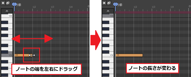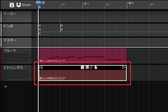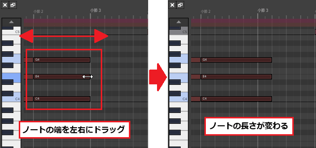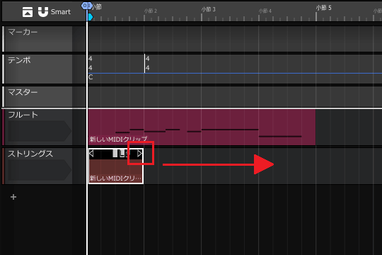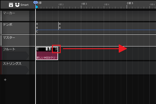 3ïŒMIDIã¯ãªããã®å³ç«¯ã«ãããâ·ãããŒã¯ã峿¹åãžãã©ãã°ãã4å°ç¯ç®ã®çµãããŸã§äŒžã°ããŸãã