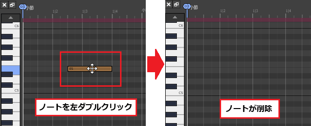 ¥åãããšãMIDIãšãã£ã¿ãŒäžã§ã¯ç»åã®ãããªç¶æ