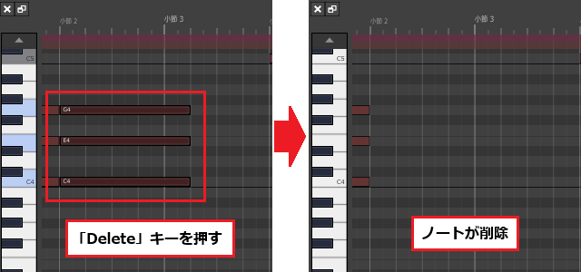 MIDIãšãã£ã¿ãŒã¯ãæã¡èŸŒãã ããŒããèªç±ã«ç·šéããããã®ç»é¢ã§ããããŒãã®ç§»åãè€è£œãªã©ã®åºæ¬æäœãèŠããããšã§ãã€ã¡ãŒãžéãã®ã¡ããã£ãçŽ æ©ã圢ã«ã§ããŸãã